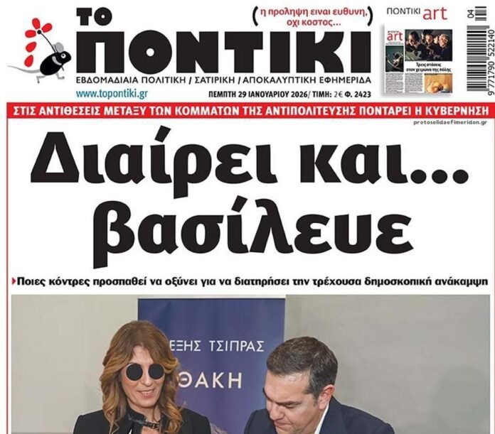 Διαβάστε το πρωτοσέλιδο της εφημερίδας «Το Ποντίκι» σήμερα 29/01/2026.