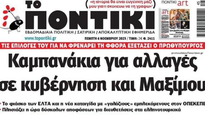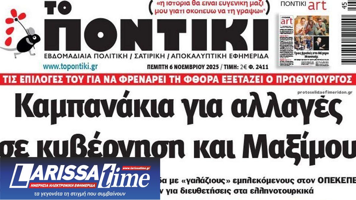 Διαβάστε το πρωτοσέλιδο της εφημερίδας «Το Ποντίκι» σήμερα 6/11/2025.