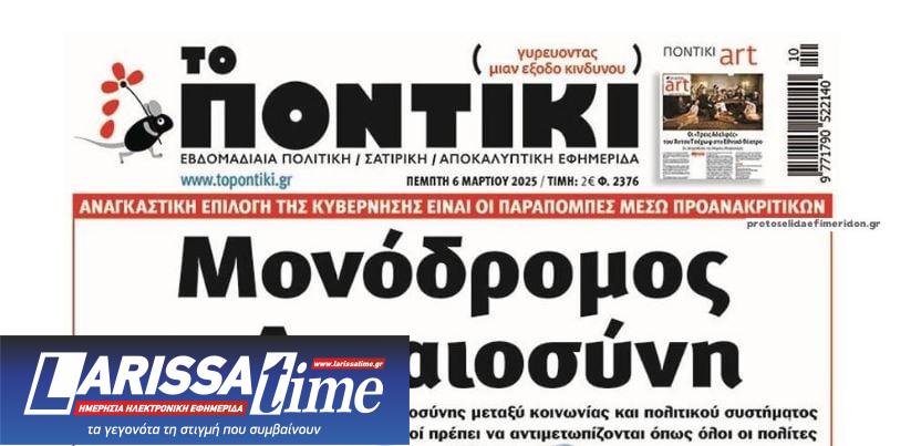 Διαβάστε το πρωτοσέλιδο της εφημερίδας «Το Ποντίκι» σήμερα 6/3/2025.