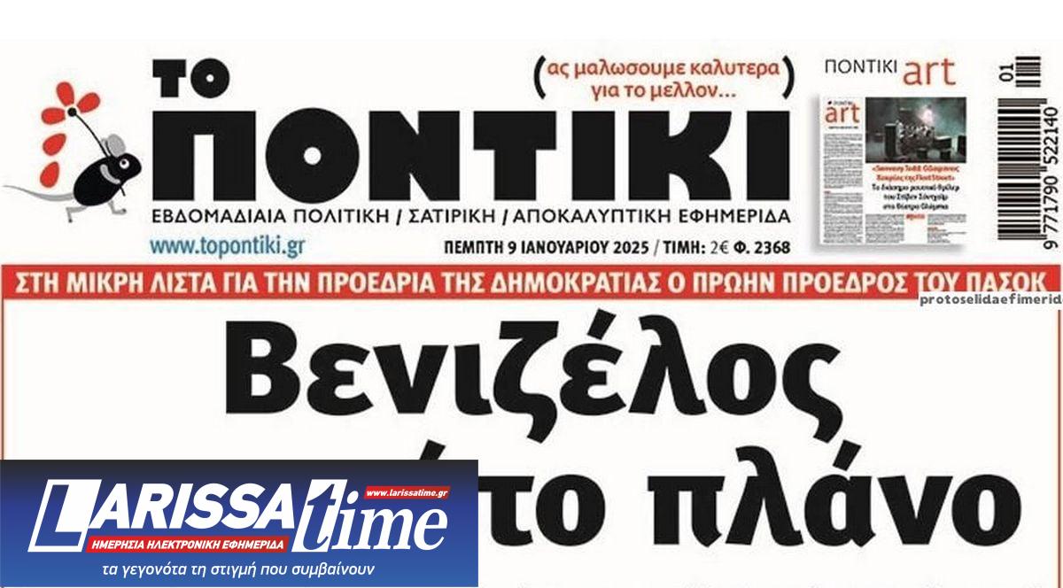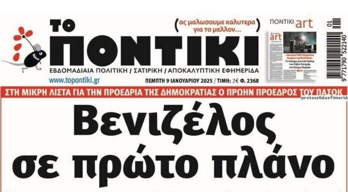 Διαβάστε το πρωτοσέλιδο της εφημερίδας «Το Ποντίκι» σήμερα 9/1/2025.
