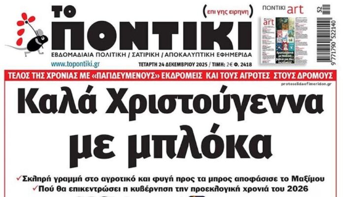 Διαβάστε το πρωτοσέλιδο της εφημερίδας «Το Ποντίκι» σήμερα 24/12/2025.