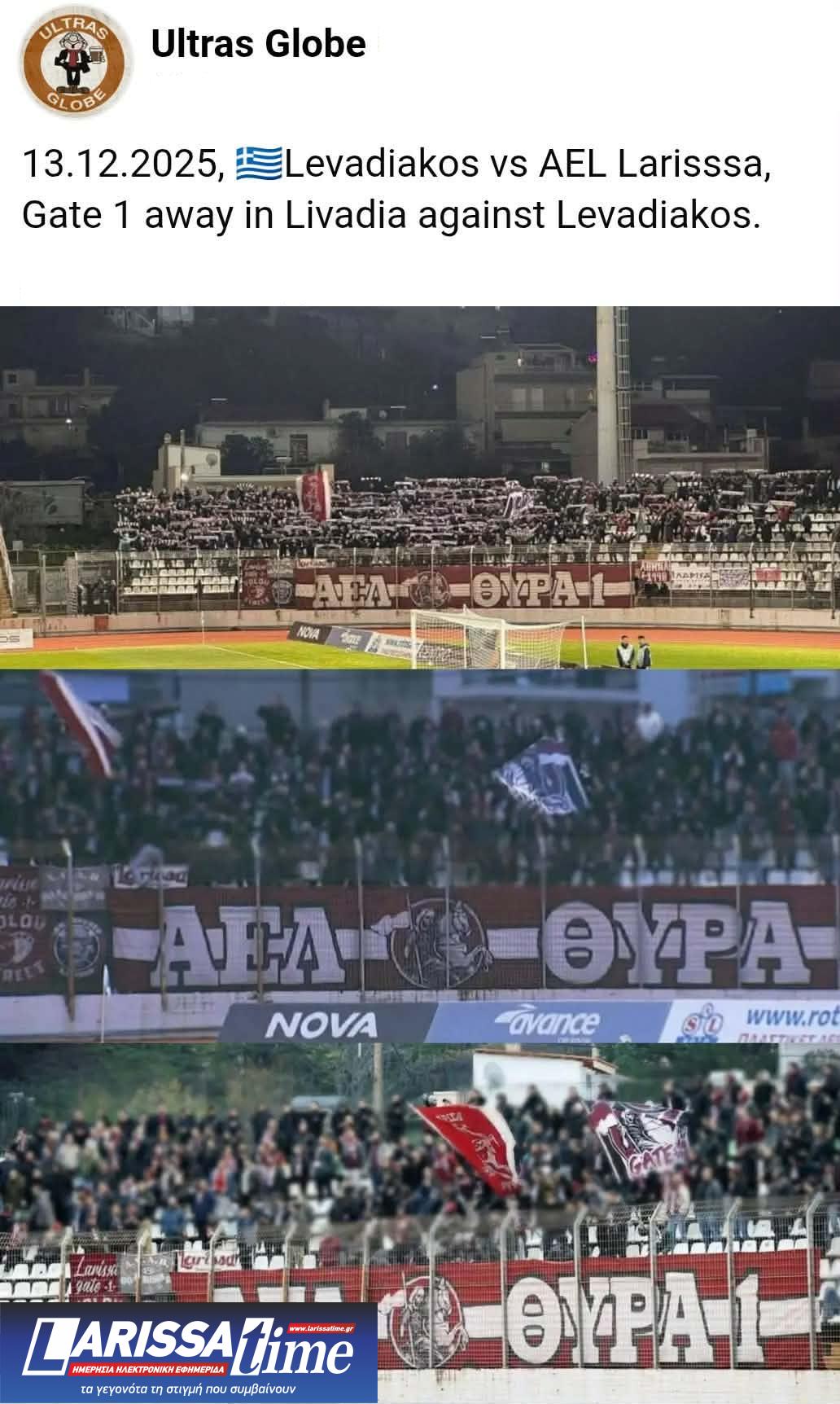 Μία οπαδική σελίδα στο facebook, Ultras Globe, η οποία αριθμεί περισσότερα από 173.000 μέλη, ανάρτησε για ακόμα μια φορά φωτογραφίες από την εκδρομή των φιλάθλων της ΑΕΛ, για την εκτός έδρας αναμέτρηση με το Λεβαδειακό, που έγινε το Σάββατο (13/12) στο Δημοτικό Στάδιο Λιβαδειάς «Λάμπρος Κατσώνης».