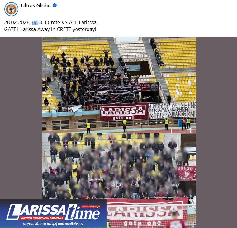 Μία οπαδική σελίδα στο facebook, Ultras Globe, η οποία αριθμεί περισσότερα από 191.000 μέλη, ανάρτησε για ακόμα μια φορά φωτογραφίες από την εξέδρα των φιλάθλων της ΑΕΛ από την εκτός έδρας αναμέτρηση με τον ΟΦΗ, από το Παγκρήτιο Στάδιο.
