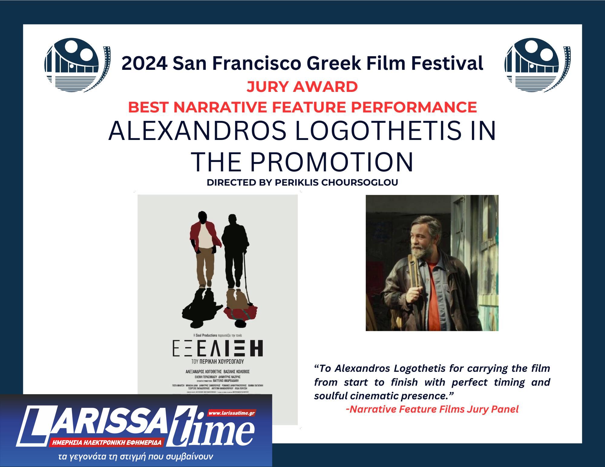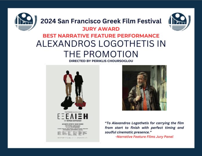 Το Φεστιβάλ Ελληνικού Κινηματογράφου του Σαν Φρανσίσκο έρχεται στην Αθήνα και για πρώτη φορά, σε συνεργασία με τη Feelgood Entertainment, διοργανώνει μια κινηματογραφική βραδιά αύριο Τρίτη 16 Ιουλίου, στον θερινό κινηματογράφο “Άνεσις” με τη βραβευμένη από το φεστιβάλ (Βραβείο ερμηνείας -Αλέξανδρος Λογοθέτης- και Βραβείο κοινού καλύτερης ταινίας) και την Ελληνική Ακαδημία Κινηματογράφου ταινία του Περικλή Χούρσογλου «Εξέλιξη» (ΙΡΙΣ Β’ Ανδρικού Ρόλου -Βασίλης Κολοβός).