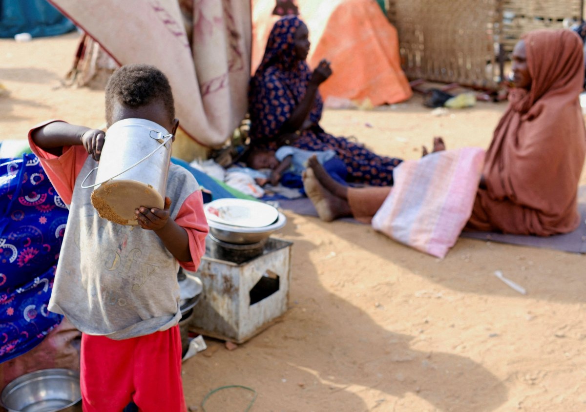 Ένα εκτοπισμένο παιδί πίνει νερό σε ένα στρατόπεδο στο Αλ-Ντάμπα, Σουδάν, 3 Νοεμβρίου 2025. REUTERS/El Tayeb Siddig