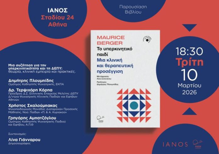 Η ελληνική έκδοση του βιβλίου Το Υπερκινητικό Παιδί — Μια κλινική και θεραπευτική προσέγγιση (Maurice Berger), που εντάσσεται στη σειρά «Ανάπτυγμα Παιδιού και Οικογένειας» (επιστημονική διεύθυνση-επιμέλεια: Γρηγόρης Αμπατζόγλου), προσφέρει μια σύγχρονη προσέγγιση στο φαινόμενο της υπερκινητικότητας και της ΔΕΠ-Υ στην παιδική και εφηβική ηλικία.