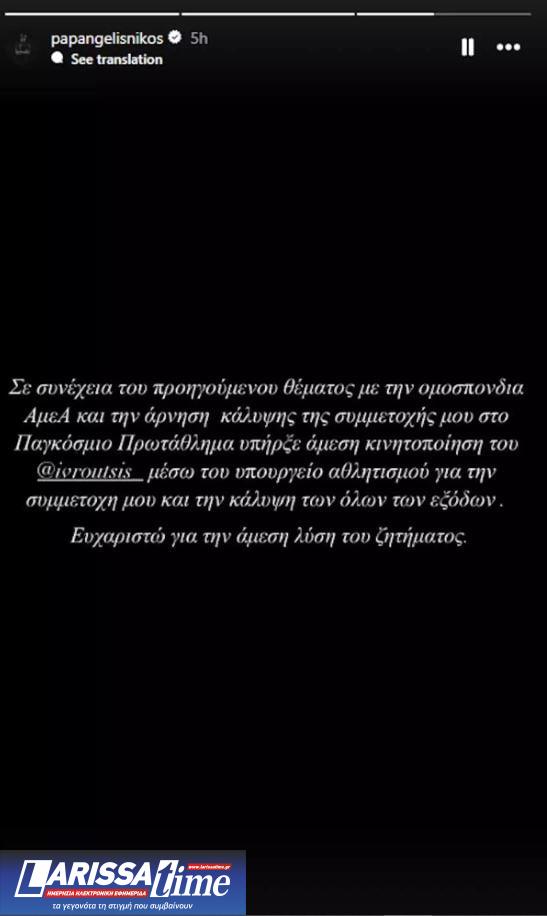 Δεν ξέρω γιατί, τι και ποιος ευθύνεται για αυτήν την κατάσταση, αλλά δυστυχώς το καζάνι δεν έχει πάτο. Το στόρι αυτό γίνεται για να γνωρίζει ο κόσμος το τι έχει να αντιμετωπίζει ο κάθε Έλληνας αθλητής», ανέφερε αρχικά σε ανάρτησή του ο Παπαγγελής, ενώ στη συνέχεια και μετά την παρέμβαση του κ. Βρούτση, πρόσθεσε: