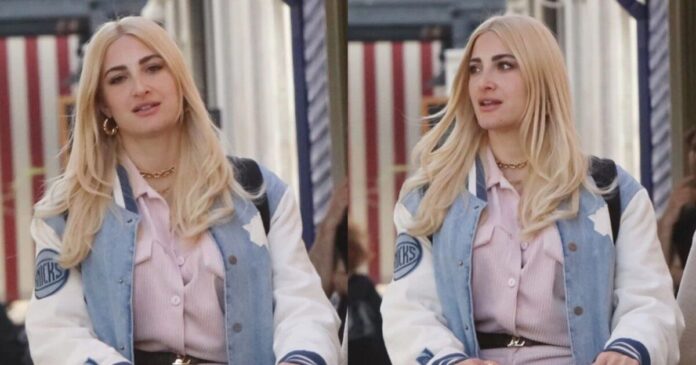Την εμφάνισή της ολοκλήρωσε με trainers από τον ίδιο οίκο και το λογότυπο LV, τα οποία κοστίζουν 1.370 ευρώ περίπου.