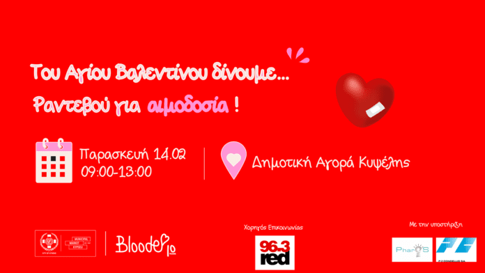 Πιστό στην υπόσχεση της αύξησης του αριθμού των τακτικών αιμοδοτών στη χώρα μας, το Bloode δίνει ραντεβού ανήμερα του Αγίου Βαλεντίνου, την Παρασκευή 14 Φεβρουαρίου στη Δημοτική Αγορά Κυψέλης με το Νοσοκομείο «Αλεξάνδρα» για εθελοντική αιμοδοσία, μεταξύ 09:00 – 13:00.