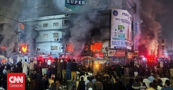 Η φονικότερη πυρκαγιά στην πακιστανική μεγαλούπολη εδώ και πάνω από μια δεκαετία, ξέσπασε το βράδυ του Σαββάτου και εξαπλώθηκε ταχύτατα στο εμπορικό κέντρο Gul Plaza – διάσημο για τα 1.200 καταστήματά του με είδη γάμου, παιχνίδια, σερβίτσια και πολλά άλλα.
