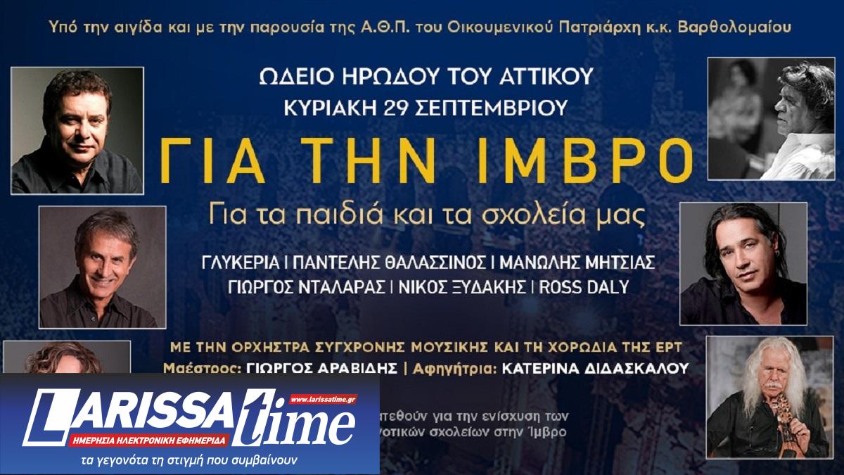 Ο Γιώργος Νταλάρας, η Γλυκερία, η Ελευθερία Αρβανιτάκη, ο Παντελής Θαλασσινός, η Φωτεινή Δάρα , ο Ross Daly, ο Νίκος Ξυδάκης, η Ευανθία Ρεμπούτσικα και ο Μανώλης Μητσιάς θα βρεθούν επί σκηνής, για να στηρίξουν, με τις μουσικές δυνάμεις τους, την Ίμβρο και τα ελληνικά σχολεία του νησιού. Άλλωστε, όλοι τους, είχαν στηρίξει την Ίμβρο, στα πιο δύσκολα χρόνια, τραγουδώντας εκεί ή γράφοντας τραγούδια για το πολύπαθο νησί.