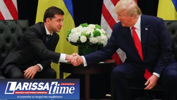Ο ρεπουμπλικάνος υποψήφιος για την προεδρία των ΗΠΑ Ντόναλντ Τραμπ γνωστοποίησε πως επικοινώνησε τηλεφωνικά χθες Παρασκευή με τον ουκρανό πρόεδρο Βολοντίμιρ Ζελένσκι και του υποσχέθηκε πως εφόσον κερδίσει τις εκλογές της 5ης Νοεμβρίου θα βάλει «τέλος στον πόλεμο» μεταξύ Ουκρανία και Ρωσίας (στη φωτογραφία αρχείου, επάνω, από το Reuters/Jonathan Ernst, ο Ζελένσκι, αριστερά, με τον Τραμπ).