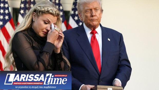 Η χήρα του δολοφονημένου οπαδού του Τραμπ παρέλαβε την τιμητική διάκριση εξ ονόματος του θανόντα και εκφώνησε ομιλία
