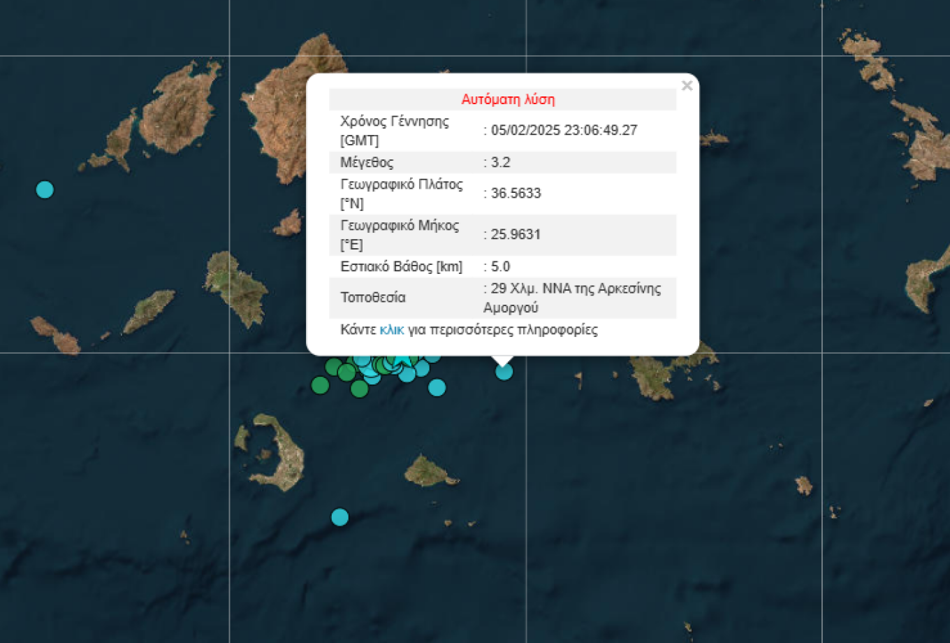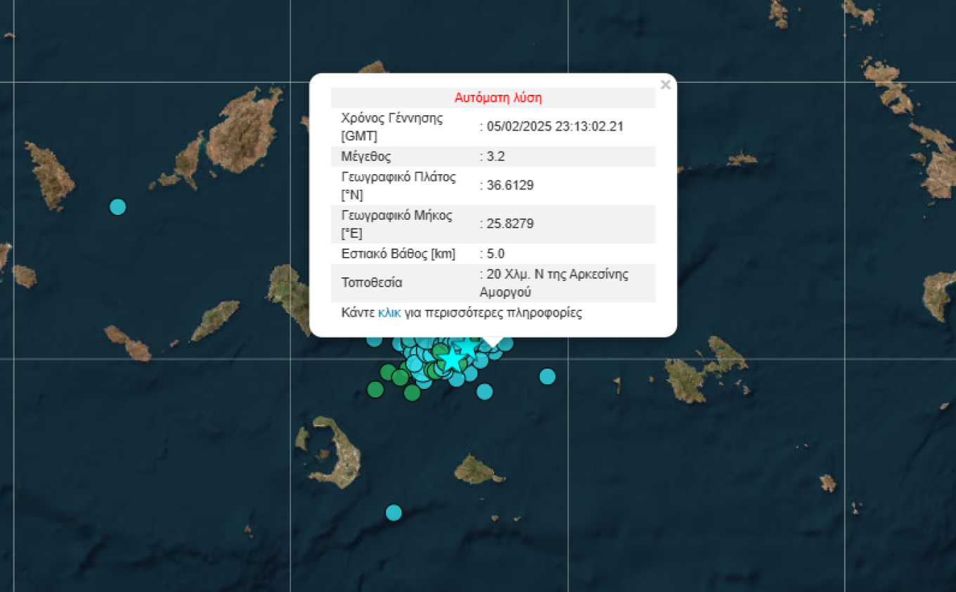 Λίγα λεπτά αργότερα, ακολούθησαν δύο ακόμη σεισμοί μεγέθους 3,2 Ρίχτερ, με το εστιακό τους βάθος να βρίσκεται στα 5 χιλιόμετρα.