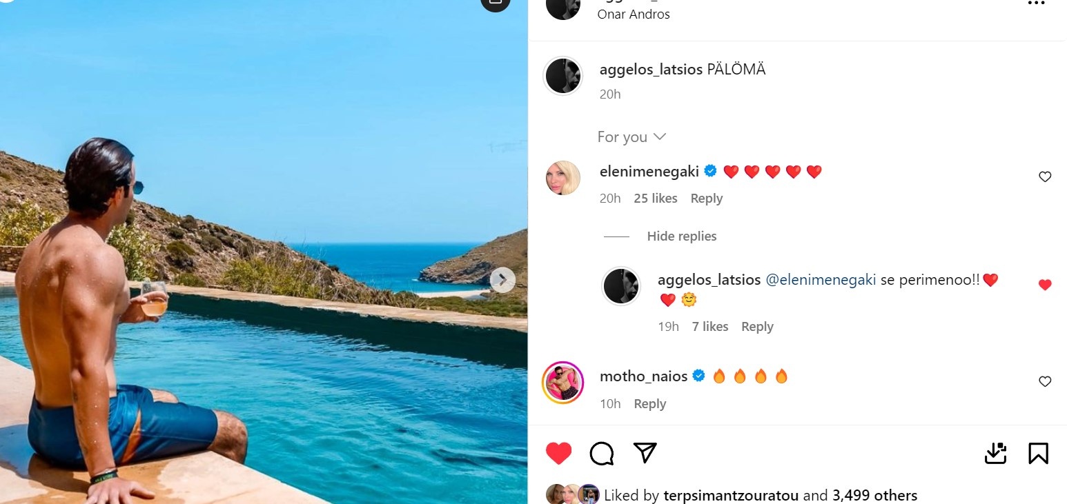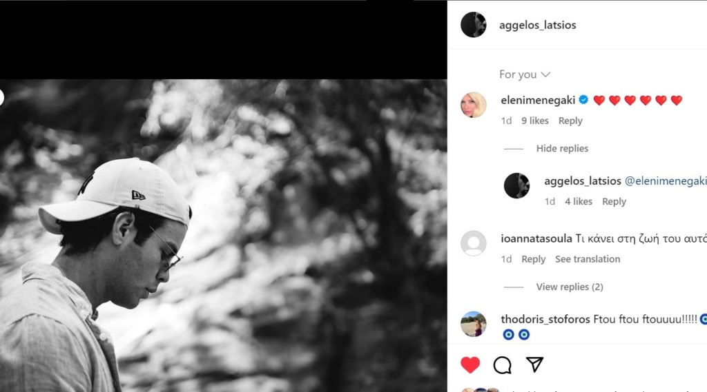 Ο γιος της Ελένης Μενεγάκη και του Άγγελου Λάτσιου δεν έκανε κάποιο σχόλιο για τη φωτογραφία, ωστόσο, τα σχόλια και τα likes των ακολούθων του έπεσαν βροχή.