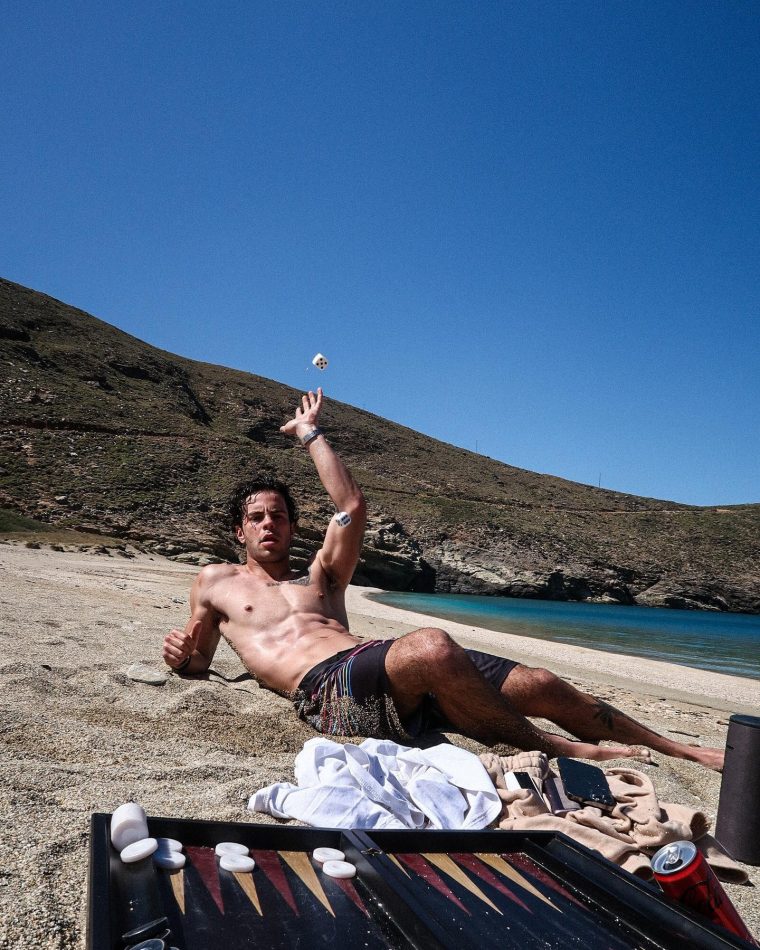 Ο γιος της Ελένης Μενεγάκη και του Γιάννη Λάτσιου είναι δραστήριος στο Instagram, δημοσιεύοντας μαγευτικές φωτογραφίες από το νησί.