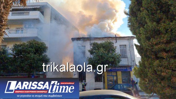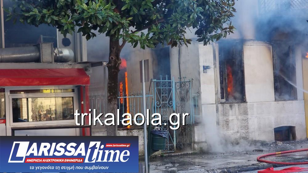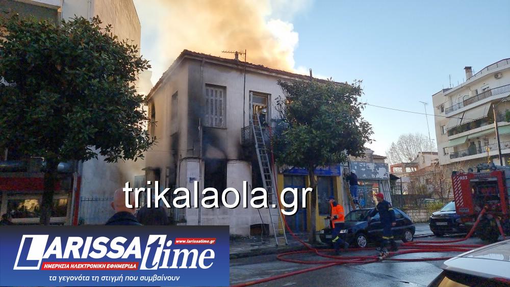 Στάχτη έγινε σήμερα το μεσημέρι το εσωτερικό του ισογείου και του πρώτου ορόφου, αλλά και της σκεπής παλιάς μονοκατοικίας, που βρίσκεται απέναντι ακριβώς από τον Μητροπολιτικό Ιερό Ναό του Αγίου Νικολάου στα Τρίκαλα.