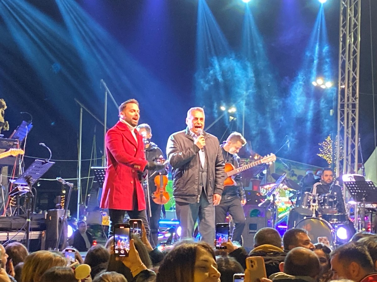 Η εκδήλωση ξεκίνησε με την αντίστροφη μέτρηση του δημάρχου Τρίπολης, Κώστα Τζιούμη, και του τραγουδιστή Ηλία Βρεττού, σηματοδοτώντας την επίσημη έναρξη. Ο χώρος, διακοσμημένος με λαμπερά φώτα, περιλάμβανε χιονισμένο έλατο, καρδιά και θόλο, που εντυπωσίασαν το κοινό.