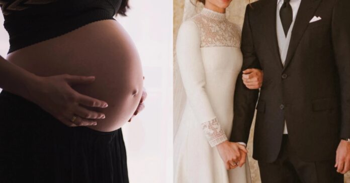 Συγκεκριμένα η βασίλισσα της Ιορδανίας μοιράστηκε μια φωτογραφία όπου απεικονίζονται η φιγούρες του ζευγαριού στο ηλιοβασίλεμα, όπου διαγράφεται η φουσκωμένη κοιλιά της κόρης της.