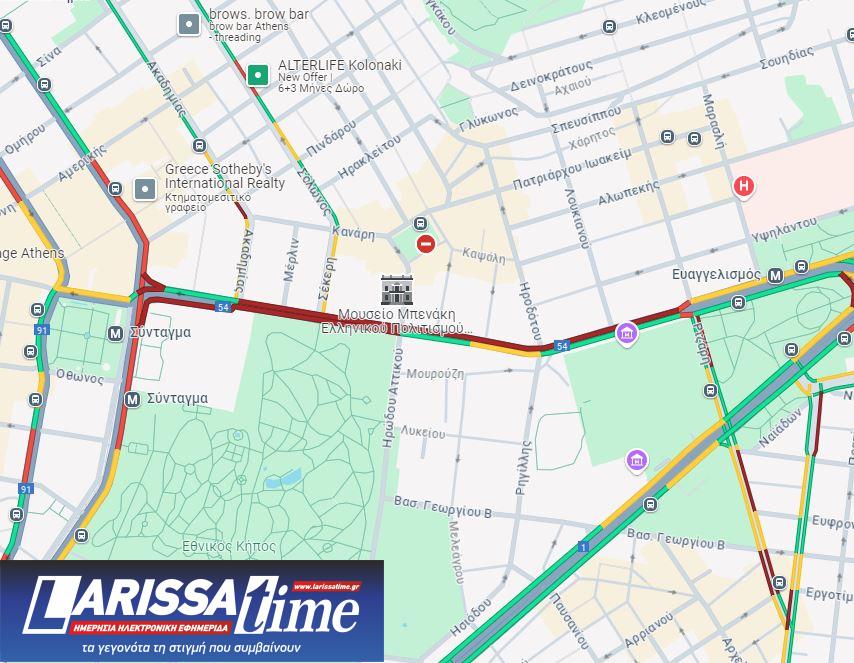Λόγω του τροχαίου η κίνηση των οχημάτων διεξάγεται με δυσκολία στο σημείο με συνέπεια να έχει προκληθεί μποτιλιάρισμα στη Βασιλίσσης Σοφίας και στα δύο ρεύματα κυκλοφορίας.