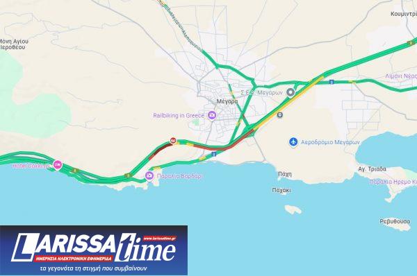 Τροχαίο με καραμπόλα 10 οχημάτων στην εθνική οδό στο ύψος των Μεγάρων