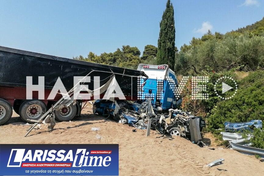 Ο οδηγός της νταλίκας, ετών 39, είναι και αυτός τραυματισμένος και διακομίσθηκε στο Νοσοκομείο Κυπαρισσίας.