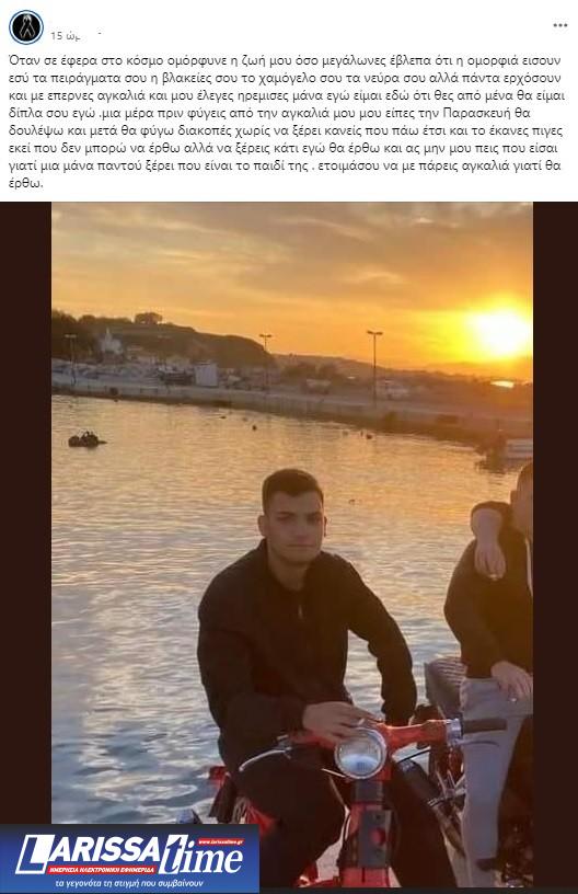 Μέσα από τον προσωπικό της λογαριασμό στο Facebook, η τραγική μητέρα του 19χρονου Νίκου αποχαιρέτησε τον αγαπημένο της γιο με λόγια που σπαράζουν.