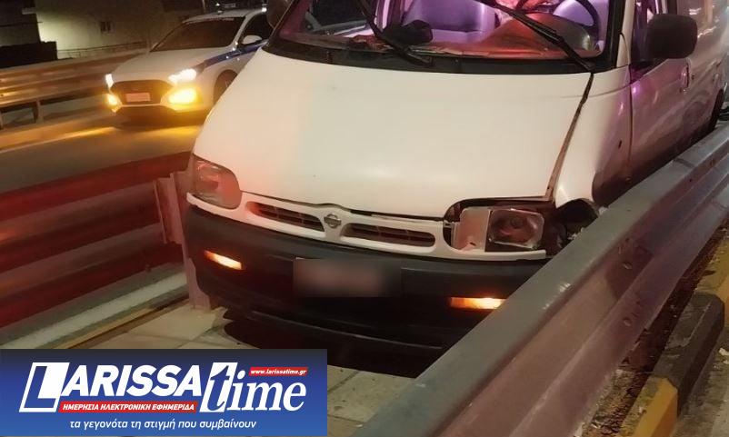 Σύμφωνα με πληροφορίες του onlarissa.gr, το τροχαίο σημειώθηκε στον κυκλικό κόμβο στη συμβολή των οδών Αγιάς και Λεωφόρου Καραμανλή, όταν ένα φορτηγό εξετράπη της πορείας του, υπό συνθήκες που διερευνώνται από την Τροχαία, και κατά έναν απίστευτο τρόπο «σφίνωσε» σε νησίδα μεταξύ των προστατευτικών κιγκλιδωμάτων.