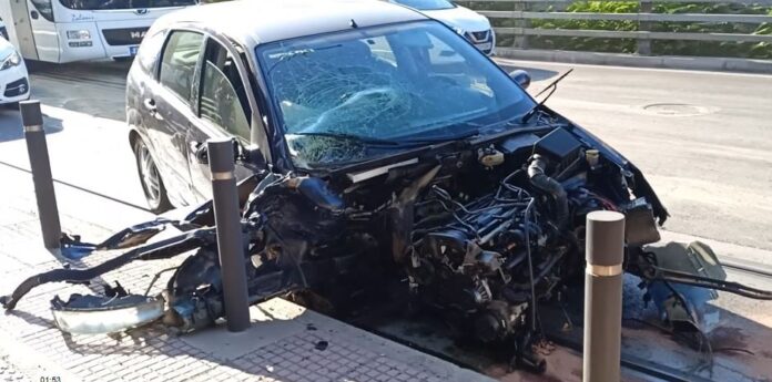 Σοβαρό τροχαίο ατύχημα, με αυτοκίνητο να πέφτει και σχεδόν να διαλύεται στις γραμμές του Τραμ, σημειώθηκε στο Νέο Φάληρο, κοντά στο γήπεδο «Καραϊσκάκης», το πρωί του Σαββάτου (02/11).