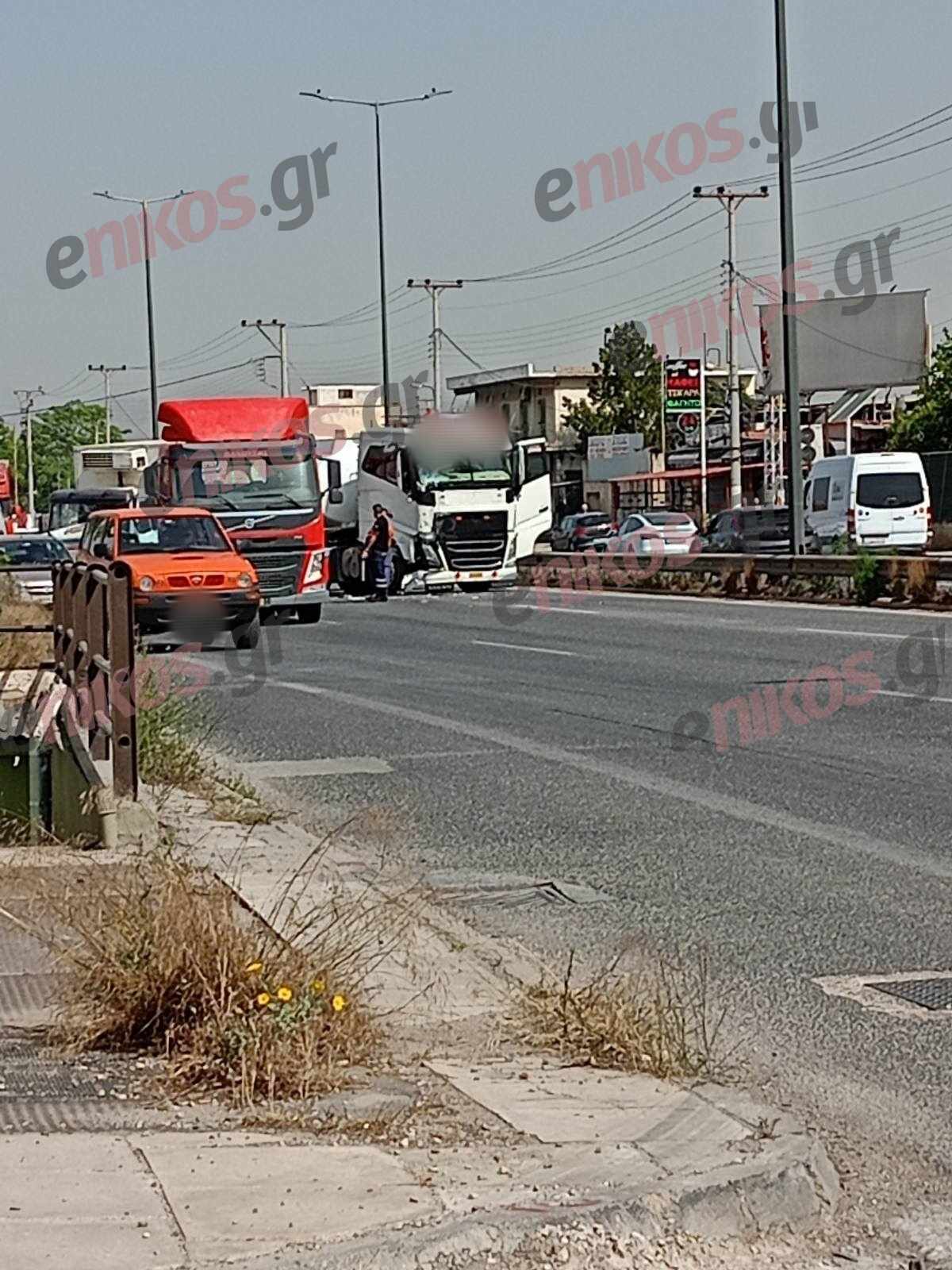 Όπως μπορείτε να δείτε στην φωτογραφία που έστειλε αναγνώστης του enikos.gr, δύο νταλίκες συγκρούστηκαν μεταξύ τους.