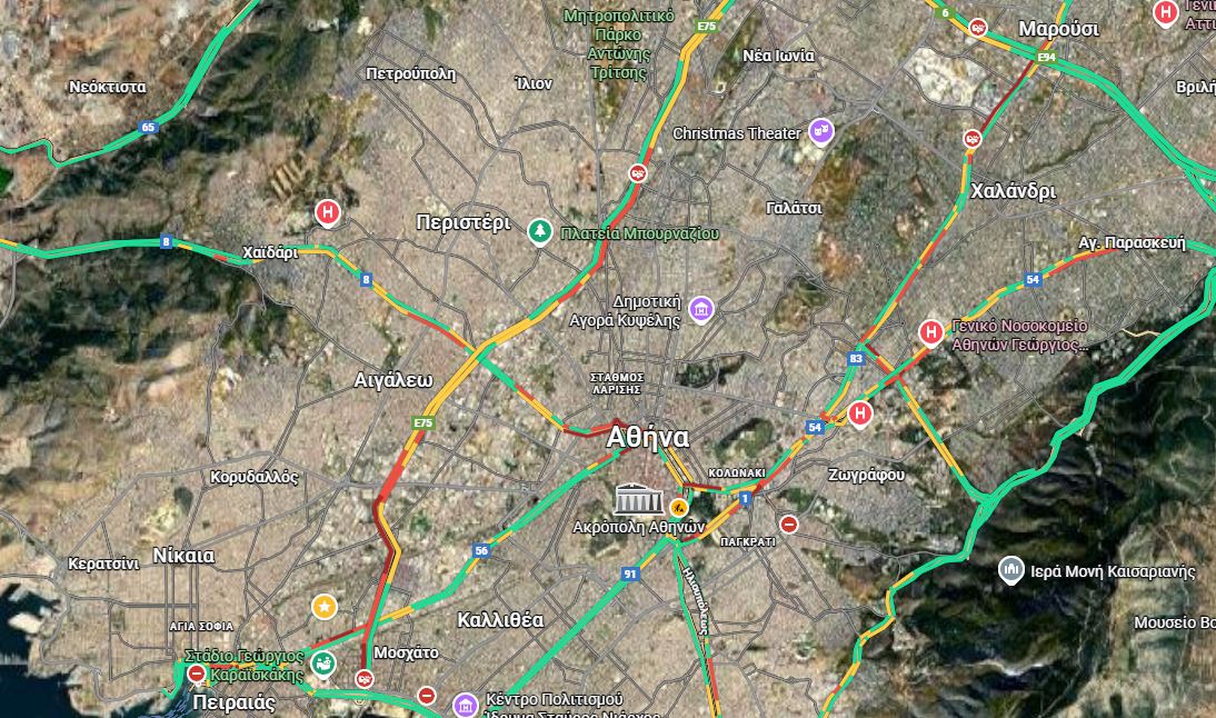 Δυσκολίες αντιμετωπίζουν και οι οδηγοί που κινούνται στην άνοδο του Κηφισού, καθώς η κίνηση είναι αυξημένη από τον Ρέντη έως το Αιγάλεω.