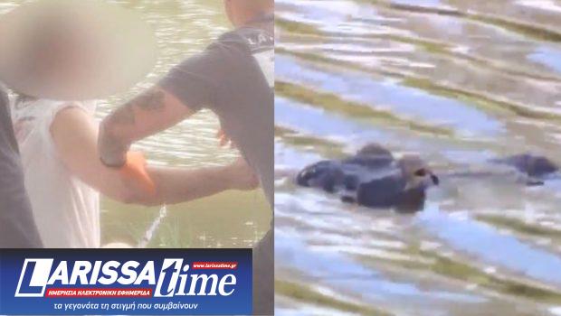 Το ερπετό δάγκωσε το χέρι του ψαρά και στη συνέχεια αφού τον πέταξε αιμόφυρτο στο έδαφος μαζί με την ψαριά του, υποχώρησε πίσω στο νερό.