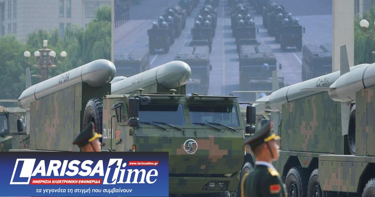 Ένας αναβαθμισμένος πυρηνικός πύραυλος με σχεδόν παγκόσμια εμβέλεια, λέιζερ αεράμυνας, υπερηχητικά όπλα και θαλάσσια drone ήταν κάποια από τα όπλα που παρουσίασε η Κίνα στη μεγάλη στρατιωτική παρέλαση που πραγματοποιήθηκε την Τετάρτη (3/9) παρουσία πολλών ξένων ηγετών συμπεριλαμβανομένου του Βλαντιμίρ Πούτιν στην πλατεία Τιενανμέν στο Πεκίνο.