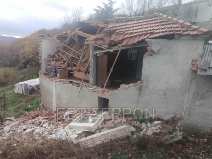 Τυχερά στάθηκαν τα μέλη μιας οικογένειας στην Ορεινή στις Σέρρες, όταν κατέρρευσαν τοίχος και στέγη σε μια πλευρά της μονοκατοικίας τους, ενώ πατέρας, γιος και κόρη βρίσκονταν σε άλλο δωμάτιο.