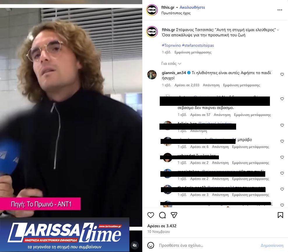 Η επιμονή του δημοσιογράφου προκάλεσε την αντίδραση του «Greek Freak», ο οποίος ζήτησε από τα ελληνικά Μέσα να αφήσουν ήσυχο τον Τσιτσιπά, χαρακτηρίζοντας τέτοιου είδους ερωτήσεις «ηλιθιότητες» και υπογραμμίζοντας: «Αφήστε το παιδί ήσυχο».