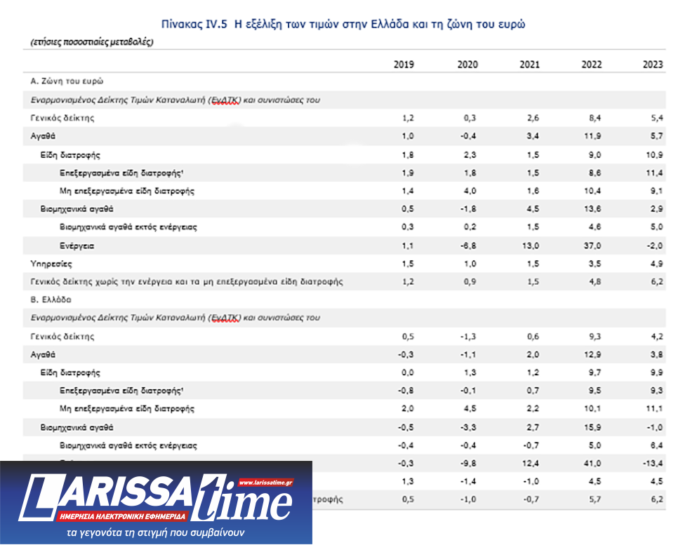 Αποκαλυπτικά για την πορεία του πληθωρισμού και της ακρίβειας στην ελληνική αγορά είναι τα στοιχεία που παραθέτει η έκθεση του διοικητή της Τράπεζας της Ελλάδας για το 2023.