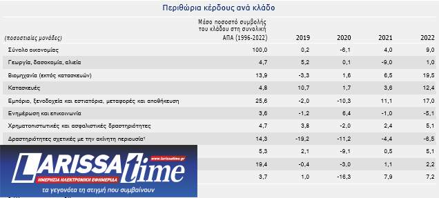Πιο συγκεκριμένα, υπήρξε σχεδόν καθολική απόσυρση των μέτρων στήριξης έναντι της πανδημίας και απόσυρση της πλειονότητας των ενεργειακών μέτρων στήριξης, καθώς οι τιμές της ενέργειας αποκλιμακώθηκαν σημαντικά. Κατά συνέπεια, το εννεάμηνο του 2023 το μερίδιο καθαρού κέρδους (που ορίζεται ως ο λόγος του καθαρού λειτουργικού πλεονάσματος προς την καθαρή προστιθέμενη αξία), το οποίο εκφράζει την απόδοση του επιχειρηματικού τομέα σε όρους λειτουργικών κερδών, υποχώρησε σε 37,7% έναντι 41,4% την αντίστοιχη περίοδο του 2022. Εντούτοις, παρέμεινε εντυπωσιακά υψηλότερο από το μέσο όρο της προ της πανδημίας τριετίας 2017-2019 (28,1%). Οι καλές επιδόσεις του τουριστικού και του κατασκευαστικού τομέα, συνδυαστικά με τις πληθωριστικές πιέσεις και προσδοκίες και τη διατήρηση της ζήτησης σε θετικούς ρυθμούς, τροφοδότησαν τα τελευταία έτη την εξαιρετική πορεία των κερδών των επιχειρήσεων.»