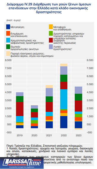 Σύμφωνα με τα στοιχεία της πρόσφατης έκθεσης της Τράπεζας της Ελλάδος, οι εισροές κεφαλαίων στην οικονομία που χαρακτηρίζονται ξένες άμεσες επενδύσεις, το 2023 κατέγραψαν σημαντική μείωση κατά 38,7%, σε σχέση με το 2022.