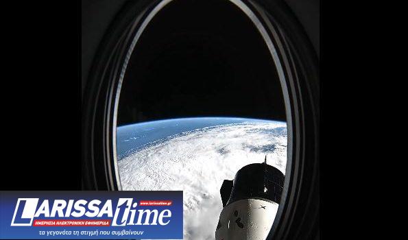 Ο ίδιος σε ανάρτησή του έγραψε: «Αυτή είναι η θέα από το παράθυρο του Dragon Endeavour». Οι εικόνες του τυφώνα είναι εντυπωσιακές.