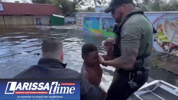 Το συγκινητικό βίντεο που δείχνει τη διάσωση του 14χρονου αγοριού έδωσε στη δημοσιότητα το γραφείο του σερίφη της κομητείας Χίλσμπορο. Το παιδί βρέθηκε στα νερά των πλημμυρών και επέπλεε πάνω σε συντρίμμια. Ωστόσο, δεν κοινοποιήθηκε η τοποθεσία της διάσωσης.