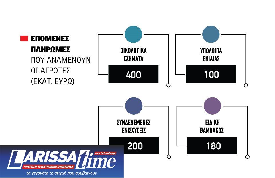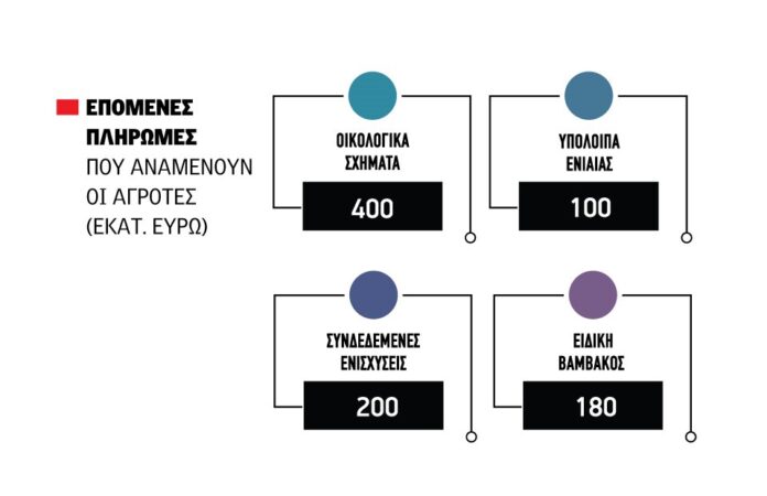 Σηµειωτέον, µετά το κλείσιµο του συστήµατος την περασµένη Τρίτη 4 Μαρτίου απαιτείται κάποιο χρονικό διάστηµα περί τις 20 ηµέρες προκειµένου να «τραβηχτούν» τα δεδοµένα από τα Κέντρα Υποδοχής ∆ηλώσεων για να τρέξει ο σχετικός διασταυρωτικός έλεγχος. Και αν όλα πάνε καλά και δεν προκύψουν άλλα προβλήµατα, τότε στην καλύτερη περίπτωση θα φτάσει τέλος του µήνα για να γίνουν οι πρώτες πιστώσεις, ενδεχοµένως ούτε καν όλα µαζί. Υπενθυµίζεται, άλλωστε, ότι ο αγροτικός κόσµος περιµένει οικολογικά σχήµατα (eco-schemes) ύψους 400 εκατ. ευρώ, υπόλοιπα ενιαίας ενίσχυσης της περσινής χρονιάς περί τα 100 εκατ. ευρώ και συνδεδεµένες ενισχύσεις ύψους 200 εκατ. ευρώ, µαζί µε την ειδική βάµβακος ποσού 180 εκατ. ευρώ.