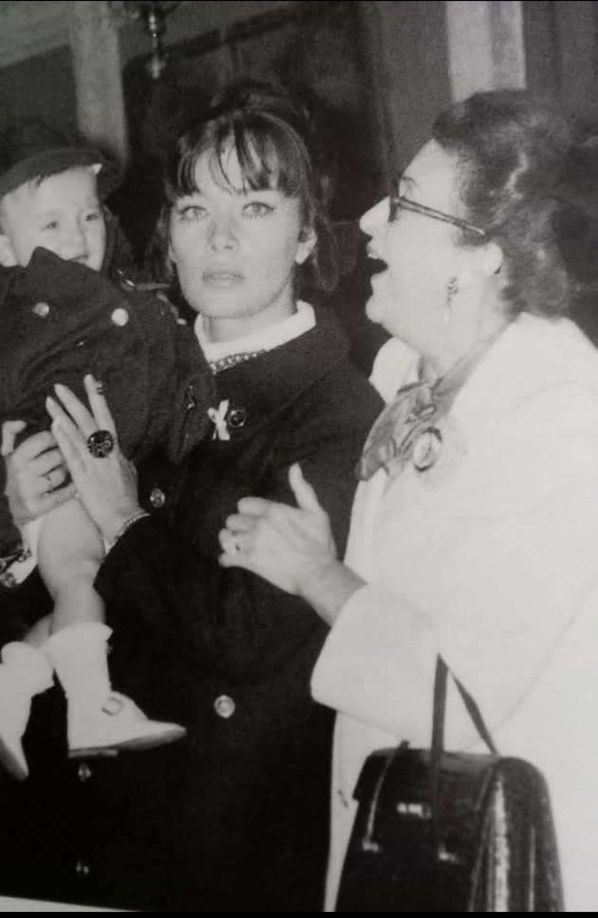 Η εικόνα αυτή, που τραβήχτηκε στις αρχές της δεκαετίας του ’70, αποτελεί ένα πολύτιμο ντοκουμέντο από την προσωπική ζωή μιας από τις πιο εμβληματικές μορφές του ελληνικού κινηματογράφου και θεάτρου. Στο στιγμιότυπο, η Τζένη Καρέζη λάμπει από ευτυχία, κρατώντας στην αγκαλιά της το νεοφώτιστο παιδί της, ενώ στο πλάι της βρίσκεται η νονά του μιρκού, Κατίνα Παξινού.