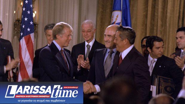Ο πρόεδρος του Παναμά Χοσέ Ραούλ Μουλίνο εξήρε τον ρόλο του αμερικανού πρώην προέδρου Τζίμι Κάρτερ, που πέθανε χθες Κυριακή σε ηλικία 100 ετών, στην παράδοση στη χώρα του του ελέγχου της διώρυγας, που πρόσφατα ο εκλεγμένος πρόεδρος των ΗΠΑ Ντόναλντ Τραμπ απείλησε ν’ ανακτήσει (στη φωτογραφία από τη wikipedia.org, επάνω, χειραψία του Τζίμι Κάρτερ με τον στρατηγό Ομάρ Τορίγιος, διοικητή της Εθνικής Φρουράς του Παναμά, μετά την υπογραφή των Συνθηκών για τη μεταφορά του ελέγχου της διώρυγας στον Παναμά, την 7η Σεπτεμβρίου 1977 στον Λευκό Οίκο).