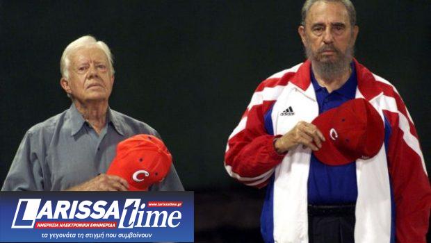 Ο πρόεδρος της Κούβας Μιγκέλ Ντίας-Κανέλ διαβεβαίωσε πως οι Κουβανοί θυμούνται με «ευγνωμοσύνη» τον αμερικανό πρώην πρόεδρο Τζίμι Κάρτερ λόγω των προσπαθειών που κατέβαλε προκειμένου να υπάρξει «βελτίωση των σχέσεων» ανάμεσα στις δυο χώρες (στη φωτογραφία αρχείου του Reuters/Rafael Perez, επάνω, ο Τζίμι Κάρτερ και ο τότε πρόεδρος της Κούβας Φιντέλ Κάστρο ακούνε τον κουβανέζικο εθνικό ύμνο στο στάδιο του μπέιζμπολ «Latinoamericano» στην Αβάνα, την 14η Μαΐου 2002).