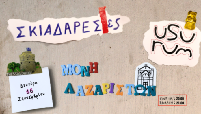 Οι Usurum και οι Σκιαδαρέσες ανεβαίνουν στην σκηνή του Φεστιβάλ Μονής Λαζαριστών την Δευτέρα 16 Σεπτεμβρίου. Μαζί με τις Σκιαδαρέσες παίζουν ο Φάνης Ζαχόπουλος, ο Χάρης Παρασκευάς και ο Αλέξης Στενάκης, στον ήχο ο Κώστας Χαϊκάλης.