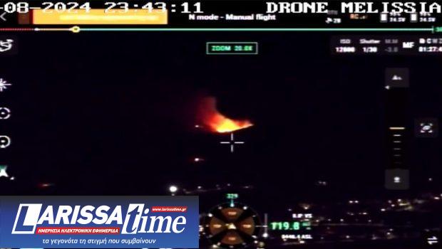 Εικόνα από το drone των Μελισσίων καθώς έχει εντοπίσει τη φωτιά που ξέσπασε χθες το βράδυ στη Βαρυμπόμπη δημοσίευσε μέσω ανάρτησής του στο Χ ο υπουργός Κλιματικής Κρίσης και Πολιτικής Προστασίας, Βασίλης Κικίλιας.
