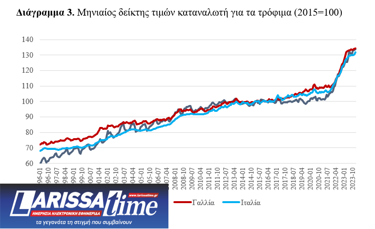 Με άλλα λόγια το επίπεδο των εισοδημάτων στην Ελλάδα, που έχει διαμορφωθεί διαχρονικά από το βαθμό μεγέθυνσης αλλά και τη μνημονιακή περίοδο, κάνει πολύ πιο ευαίσθητη την Ελληνική κοινωνία στις αυξήσεις των τιμών σε σύγκριση με τις άλλες ευρωπαϊκές κοινωνίες.
