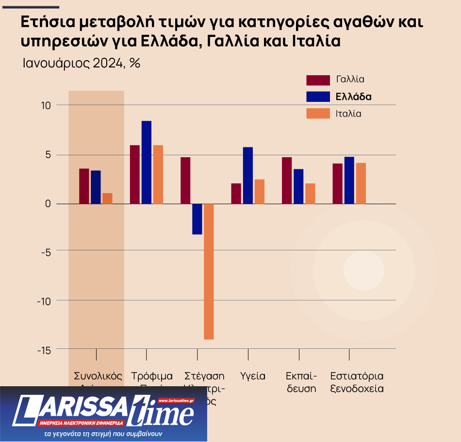 Με εξαίρεση των πτώση των τιμών για την ενέργεια για την Ελλάδα και την Ιταλία, σε όλες τις άλλες κατηγορίες παρατηρείται ότι παραμένει η σημαντική άνοδος των τιμών.