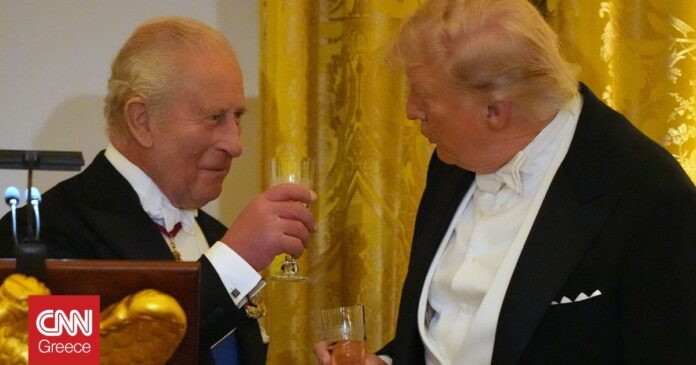 Τα μηνύματα αλλά και τα αστεία δεν έλειψαν από τον Ντόναλντ Τραμπ και τον βασιλιά Κάρολο κατά το επίσημο «βασιλικό» δείπνο που παρέθεσε ο Αμερικανός πρόεδρος στο βασιλικό ζεύγος της Μεγάλης Βρετανίας στο Λευκό Οίκο.