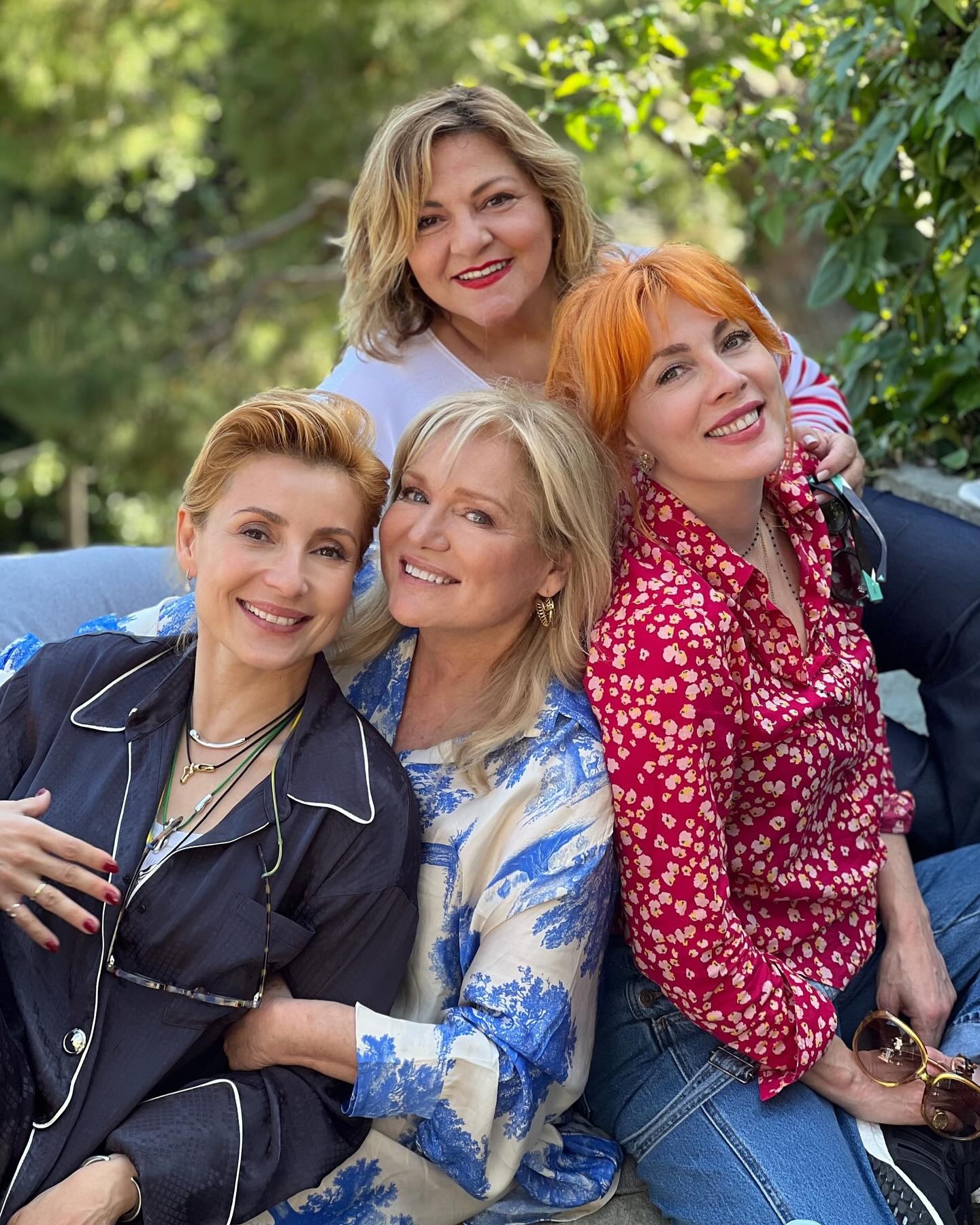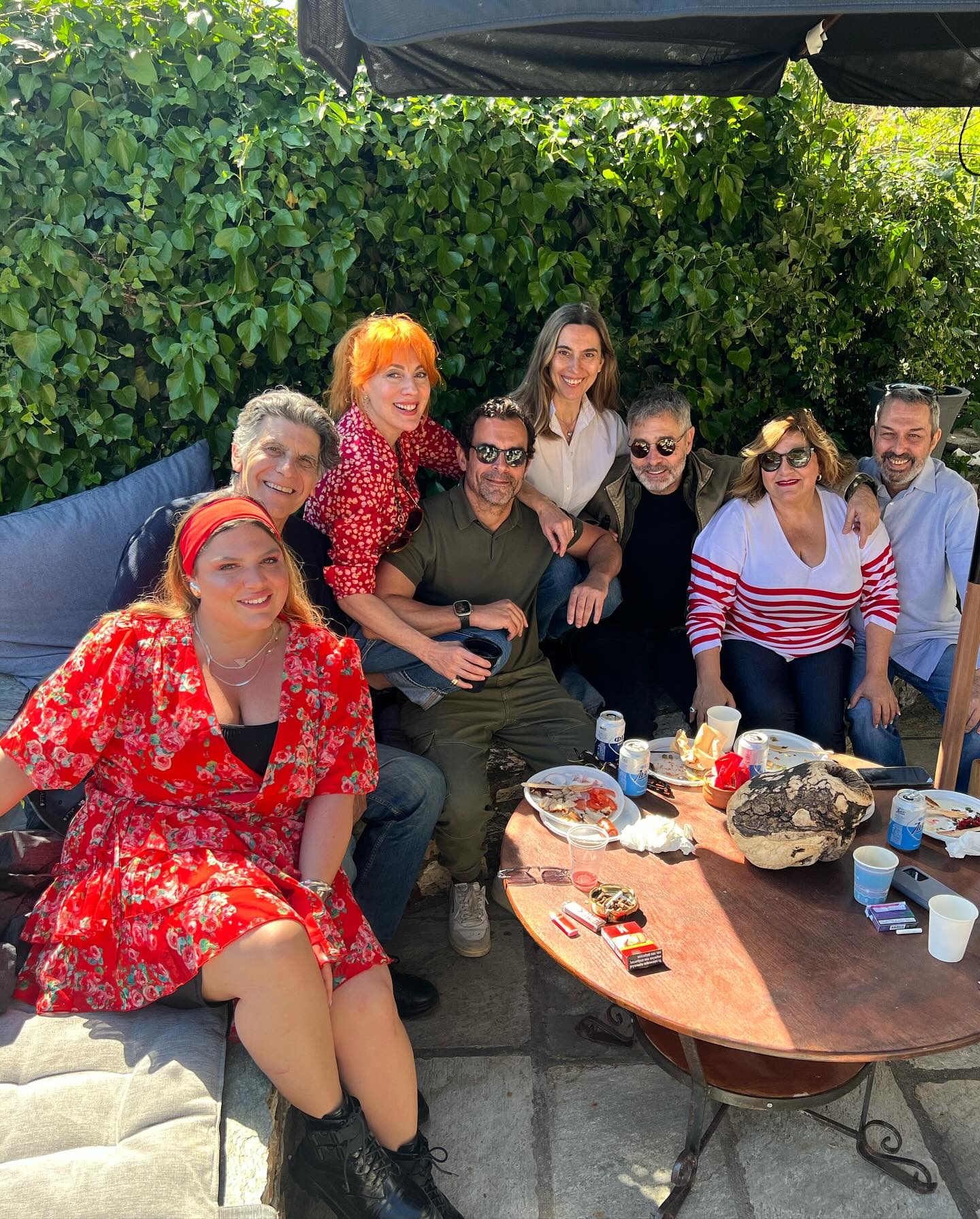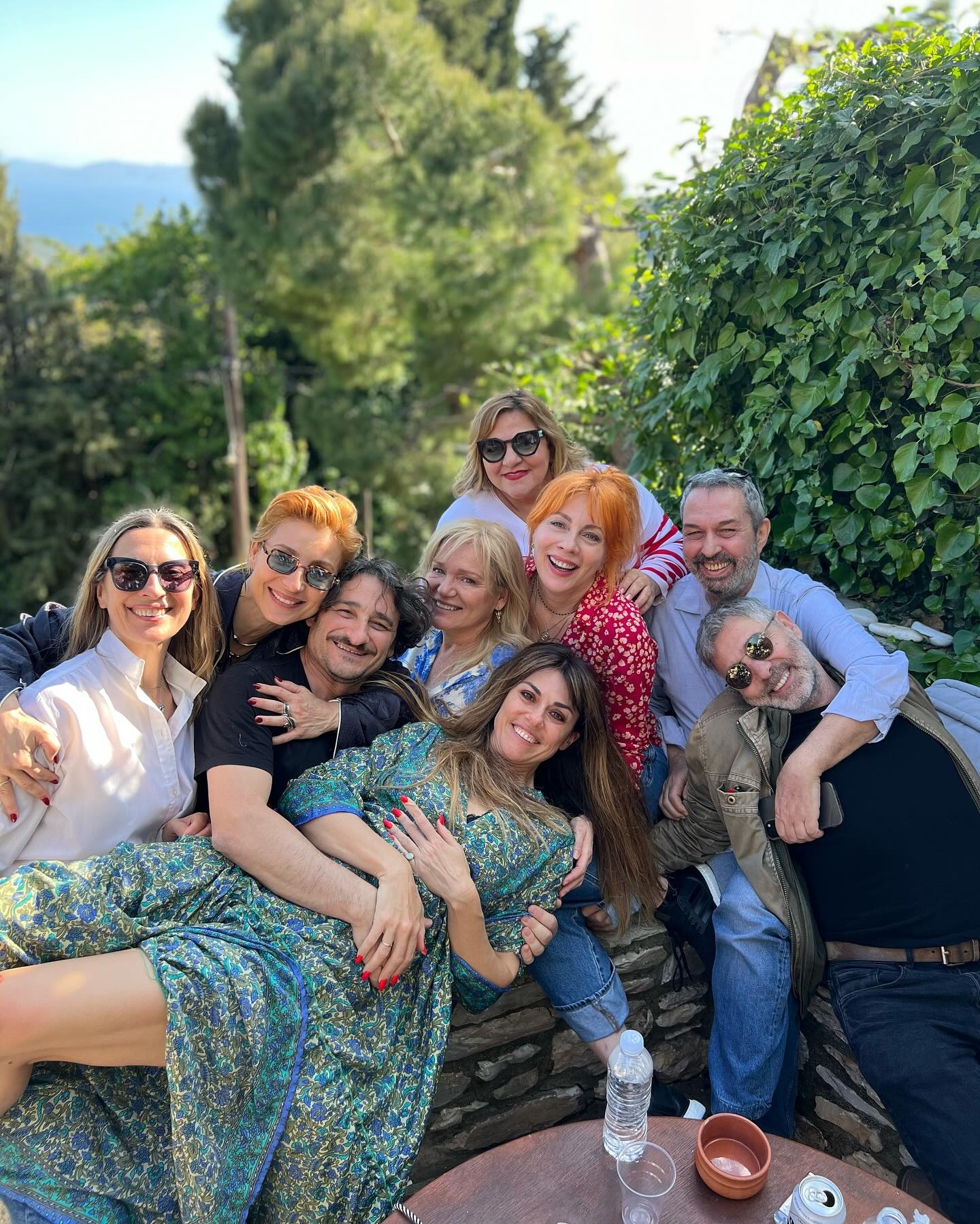 Πόζαραν όλοι μαζί στον φωτογραφικό φακό και έδειχναν ότι είναι μία υπέροχη παρέα, μέσα στο καταπράσινο δάσος και τις πέτρινες αυλές.